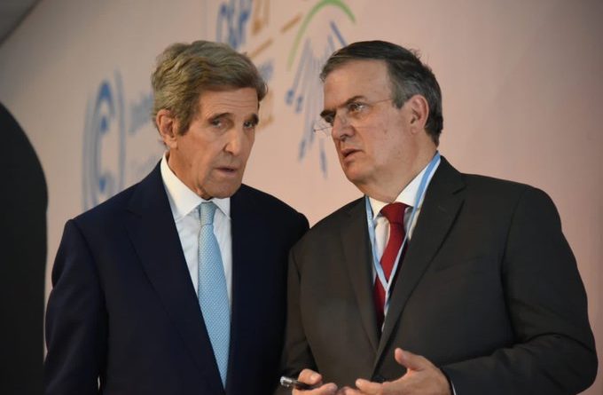 «Haremos equipo con John Kerry, enviado especial del Presidente Biden para la acción climática, con el fin de avanzar en el cumplimiento de las metas que México se ha propuesto para reducir el calentamiento global «Marcelo Ebrard