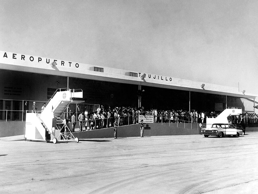 Las obras comenzaron en 1956, marcando el inicio de un proyecto monumental que culminaría con la inauguración del aeropuerto el 10 de noviembre de 1959. Inicialmente denominado Aeropuerto Internacional de Punta Caucedo, su nombre fue cambiado 10 días después a Aeropuerto Internacional General Trujillo, en honor al dictador.