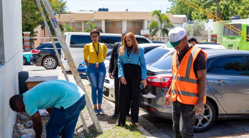 Katy Báez, directora interina del Inposdom junto a la encargada de servicios generales la arquitecta Grecia Carolina Otoño y un equipo de técnicos y empleados de ese departamento, se desplazaron a la estafeta del sector Los Mameyes, ubicada en calle Jacinto de Los Santos Santo Domingo Este, donde fueron dejados iniciados los trabajos de este programa.